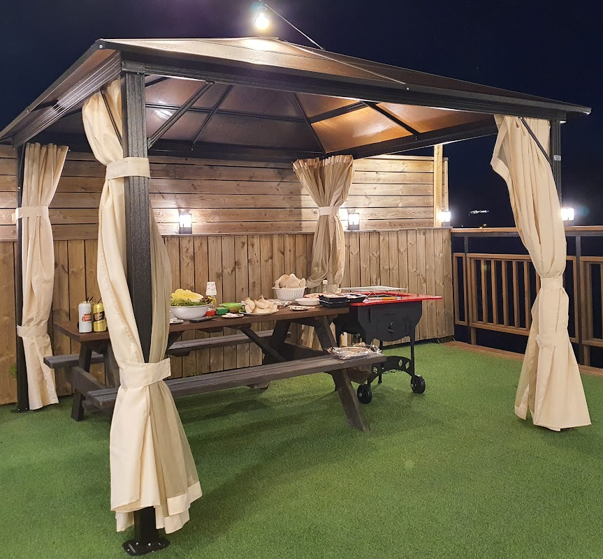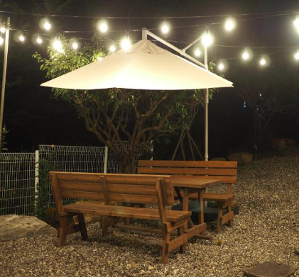 야외 테이블, 체어 등 파라솔과 함께 사용되는